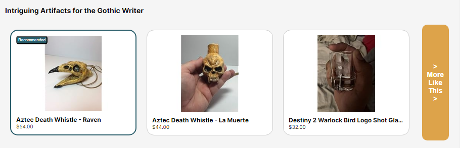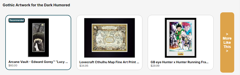 Are there techniques in here that can be used to enhance discovery experiences? Absolutely. “Brainstorming at scale” is a huge strength of generative AI – while it doesn’t nail every result, it can keep going, tirelessly. Even with only 1 in 4 suggestions being on the mark, it’s going to quickly outpace me as a human coming up with ideas. I would never in a million years have thought to look in the Switch gaming section for something for Wednesday Addams, but there it was! There is absolutely a place for flexing this muscle anywhere discovery is needed.